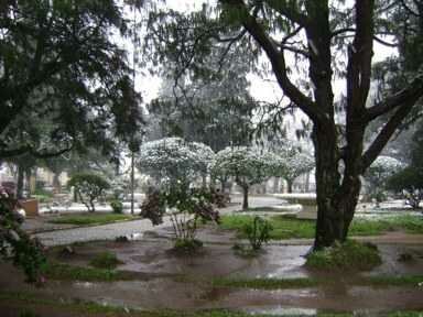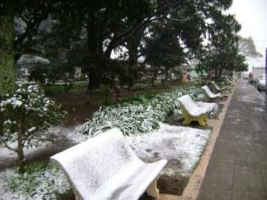Este día pasará a nuestra historia climática del estado más austral del Brasil, Río Grande do Sul, como uno de los más fríos jamás vistos. Hoy ha sido un día asombroso. Temperaturas menores a 5ºC durante la tarde son muy raras aun en los meses más fríos del calendario Junio a Agosto, pero hoy la temperatura descendió hasta 2ºC en varias ciudades después del mediodía con mínimas ocurriendo durante la tarde. Lo que comenzó durante la mañana como nieve granular y garrotillo, en la tarde se convirtió en pesada nieve. La ciudad de Pinheiro Machado (450 metros) jamás pudo haber esperado estar blanqueada, a pesar del pronóstico de nieve hecho por el Centro del Tiempo MetSul, la única institución pública o privada del tiempo en Brasil que pronosticara la nieve.