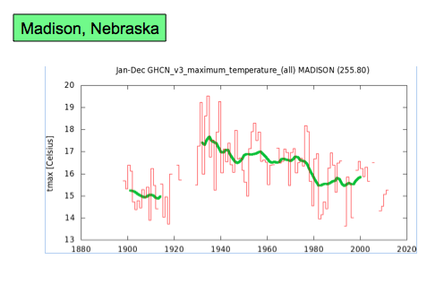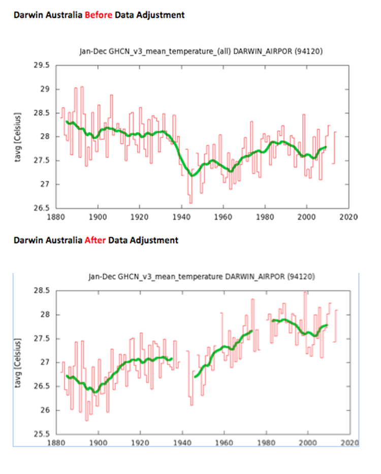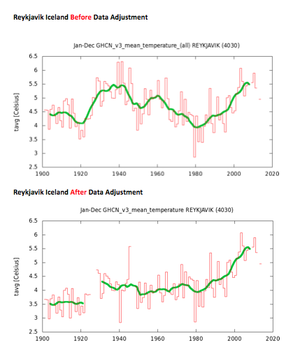 Si las actuales temperaturas son comparadas con las de los años de 1930 no se encontraría nada destacable. Para muchas partes del mundo la década de 1930 fue la más calurosa en los últimos 100 años, incluso aquellas encontradas en Groenlandia. Comparando a las actuales temperaturas con las de los años 80 es lo mismo que comparar nuestras temperaturas de verano con las de principios de primavera en lugar de las del último verano. Resulta obvio que la comunidad del calentamiento global hace esto, y de manera muy engañosa o fraudulenta.