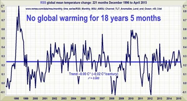 Hacia fines de 1978 los satélites comenzaron a recoger datos de la temperatura de todo el mundo. Durante los siguientes 20 años, hasta 1998 la temperatura media global permaneció sin cambios en directa contradicción con la información de las estaciones en tierra firme que indicaban un aumento “sin precedentes” de la temperatura.