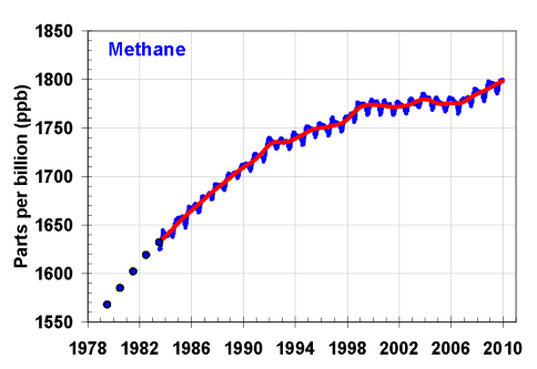 Concentración media global de metano en el aire