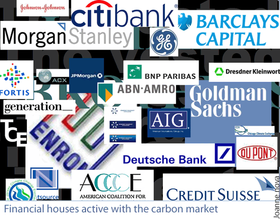 El mercado mueve nada menos que 92.000 millones de euros según Reuters y participan en él decenas de honorables compañías (ver imagen del blog de Jo Nova) .